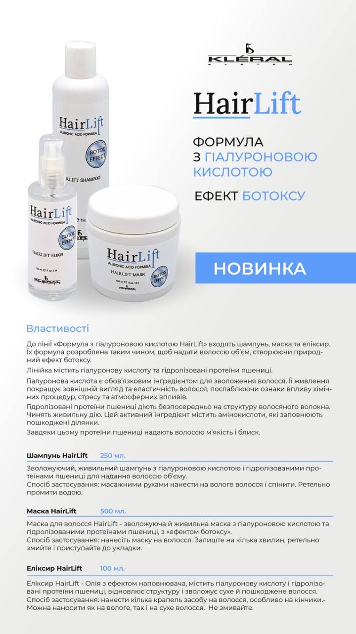 🧴В лінію HairLift входять шампунь, маска та еліксир.