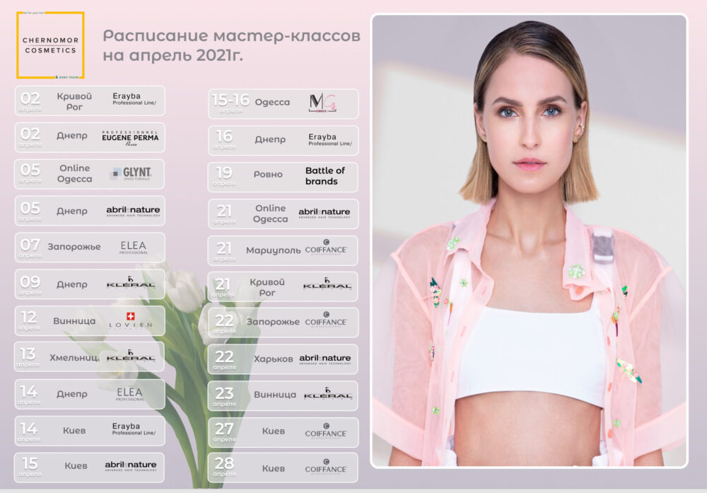 Chernomor Cosmetics приглашает мастеров-парикмахеров на семинары по колористике и стрижкам в апреле 2021. Подробную информацию о том, как проходят семинары Вы можете найти на сайте в разделе «Обучение».