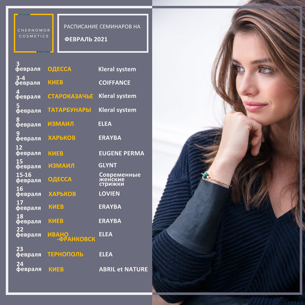 Chernomor Cosmetics приглашает мастеров-парикмахеров на семинары по колористике и стрижкам в феврале 2021. Подробную информацию о том, как проходят семинары Вы можете найти на сайте в разделе «Обучение». Подробно о предстоящих семинарах на странице СЕМИНАРЫ ФЕВРАЛЬ 2021.