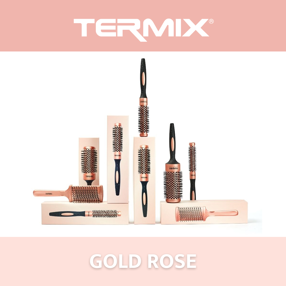 TERMIX презентовала самый элегантный ассортимент профессиональных брашингов Evolution : новую ограниченную серию Gold Rose. Шесть тепловых брашингов цвета розового золота, которые распутывают, завивают и разглаживают, заботясь о здоровье ваших волос и придавая им максимальный блеск.
