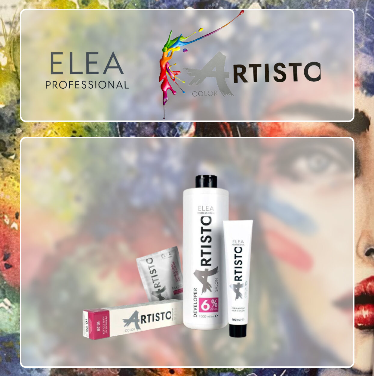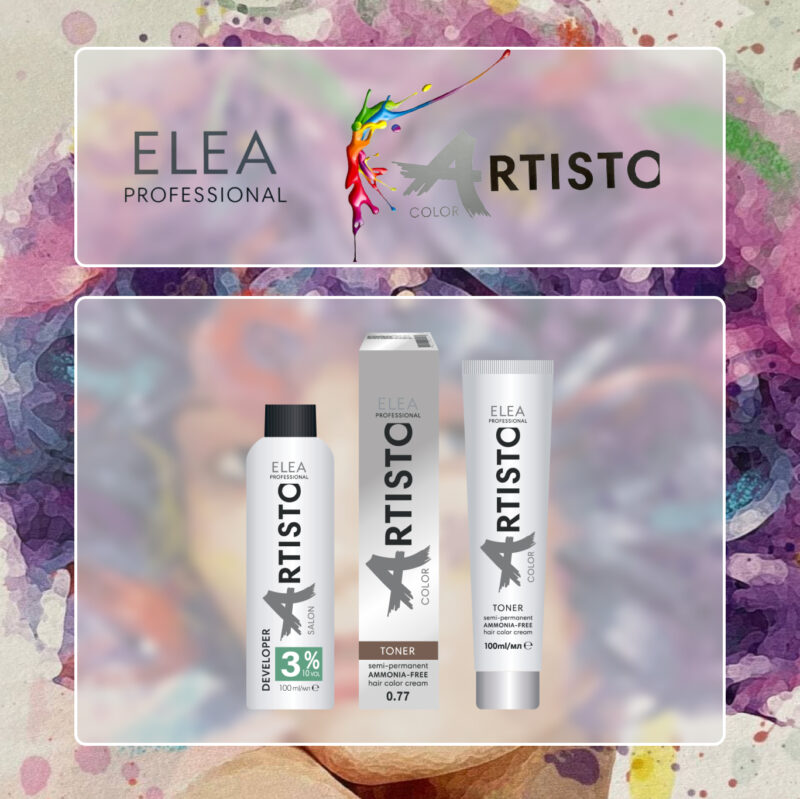 ELEA Professional ARTISTO COLOR - стійка перманентна трикомпонентна крем-фарба для волосся. Палітра включає 108 відтінків і 6 коректорів.