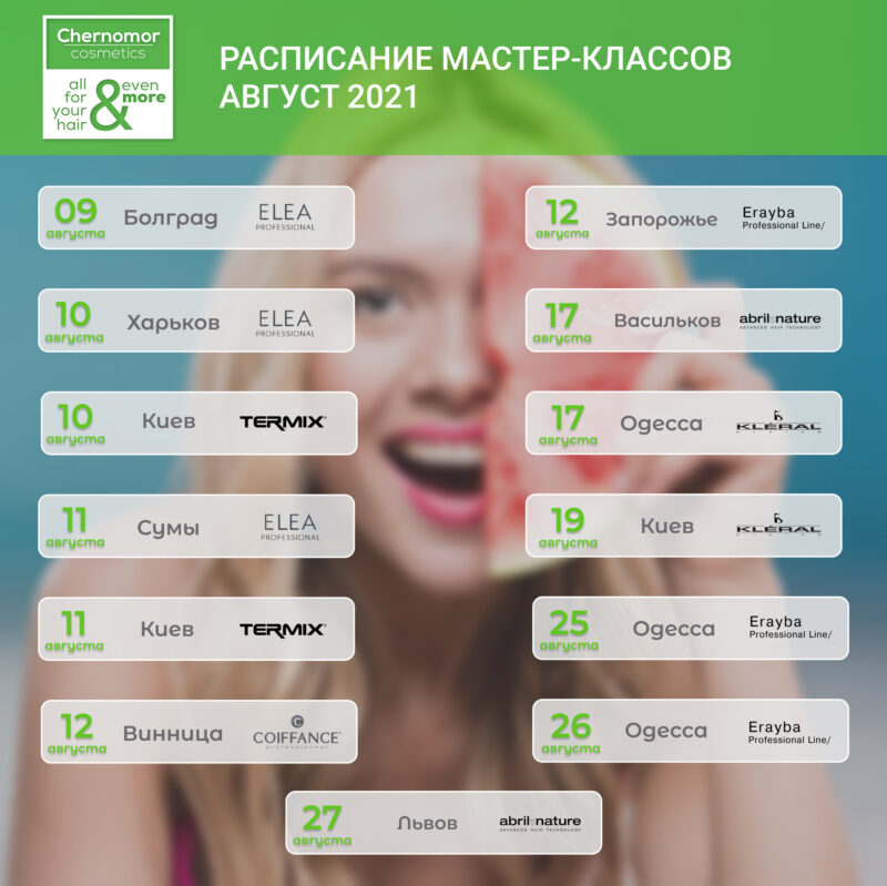 Chernomor Cosmetics приглашает мастеров-парикмахеров на семинары по колористике и стрижкам в августе 2021. Подробную информацию о том, как проходят семинары вы можете найти на сайте в разделе «Обучение». Темы и программы семинаров разрабатывались топовыми технологами компании с учетом всех актуальных тенденций и сложностей в работе мастеров при окрашивании волос. Они включают применение современных методов работы с волосами и разбор актуальных техник окрашивания волос. Все семинары для парикмахеров имеют четкую структуру, которая позволяет максимально раскрыть заявленную тематику, а полученная информация легка в усвоении и применении в ежедневной работе парикмахеров-колористов и парикмахеров-стилистов. Программа семинаров состоит из теоретического блока и практической демонстрации в зависимости от выбранной тематики. Участники семинаров гарантировано получат ответы на актуальные вопросы, разберут типичные ошибки при окрашивании волос и создании стрижек. Каждый участник семинара получит сертификат о прохождении семинара. Наша цель — это успех мастера!